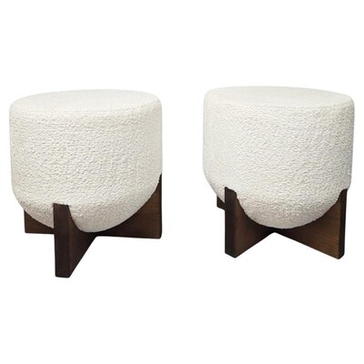 Contemporary Pair of Stool, Wood and White Boucle Fabric, Italy