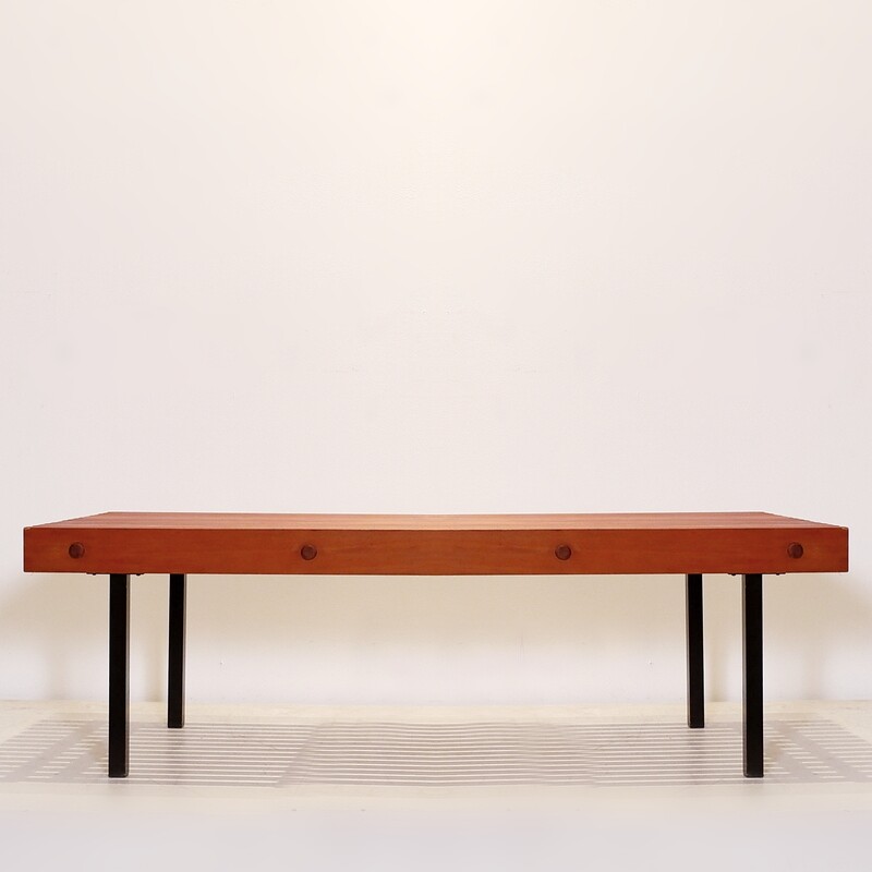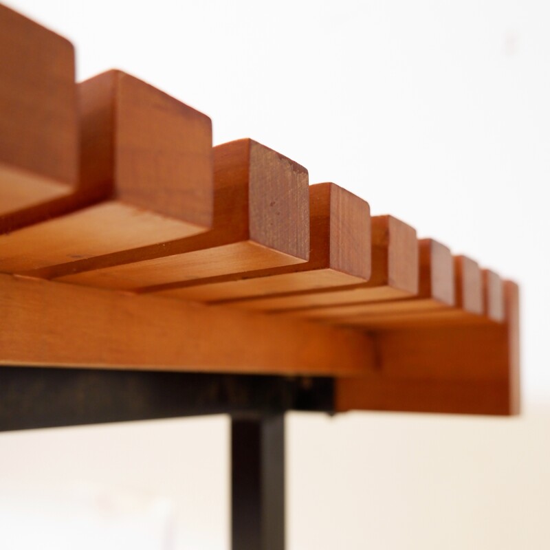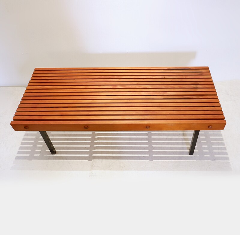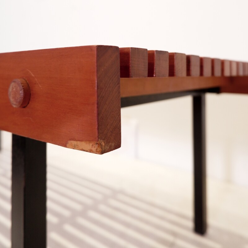 Slat Bench in Teak Wood & Metal, 1960s