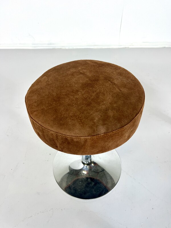 Mid-Century Stools, Chrome & Brown Leather Seat, 1970S - Set Of 6