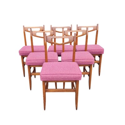 Set of 6 Dining Chairs by Guillerme et Chambron, France,1960s - New Upholstery