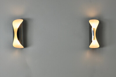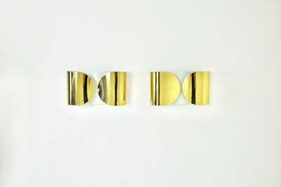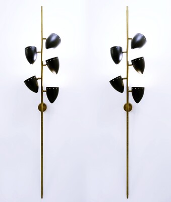 Pair Of Brass And Glass Wall Sconces, Italy 2 pairs available