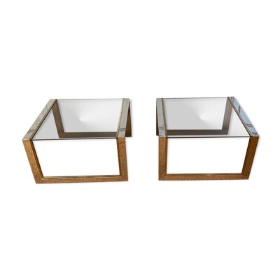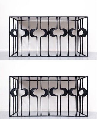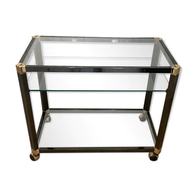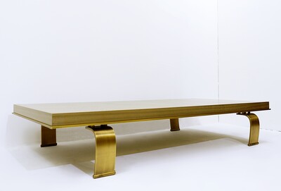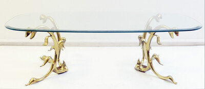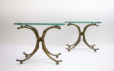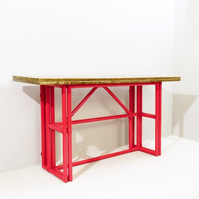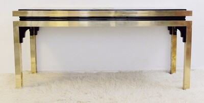 Console Table in Brass and metal with glass top. By Peter Ghyczy for Ghyczy, Holland, 1970s.