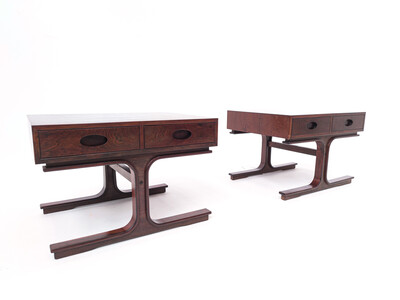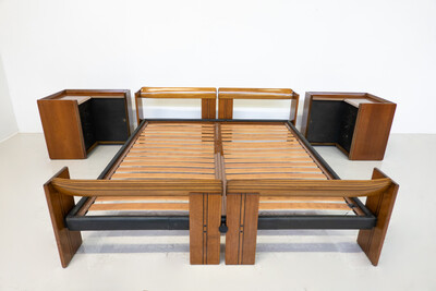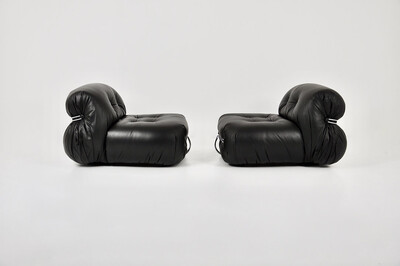 Pair of rosewood & brown Leatherette armchairs - Saporiti, italy