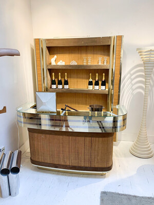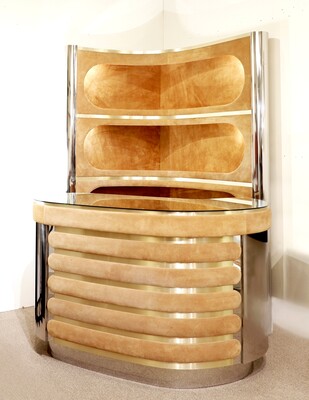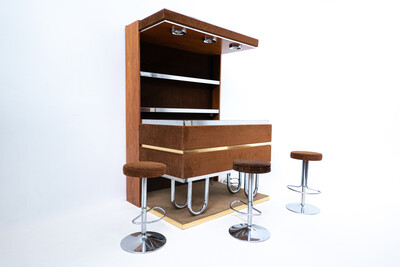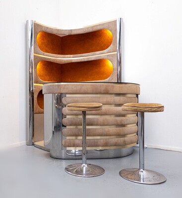 Mid-Century Modern Suede Bar by Willy Rizzo, Italy, 1970s