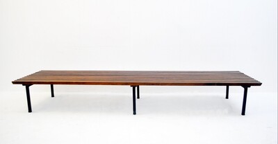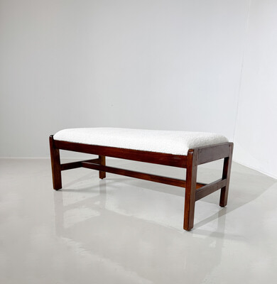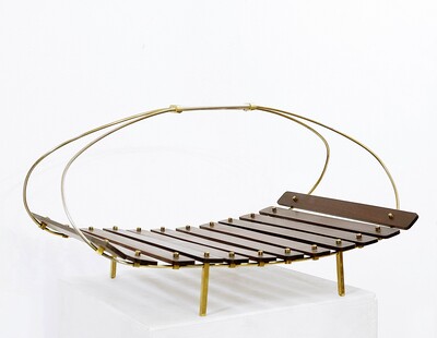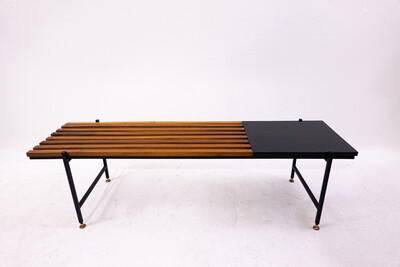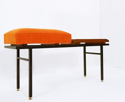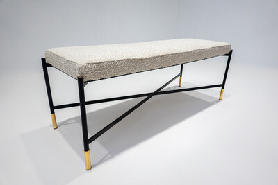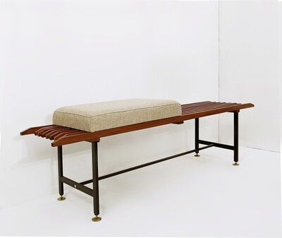 Contemporary Bench, Brass and Wood and Beige Fabric, Italy