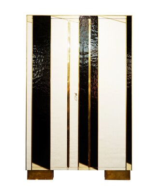 Brass, Marbled & black Glass Chest of Drawers - Italy