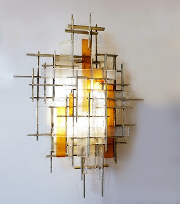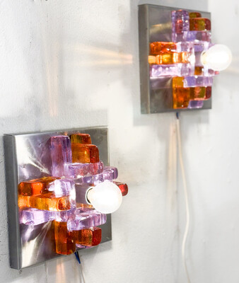 Large pair of wall lights in Murano glass, Italy, 1970's