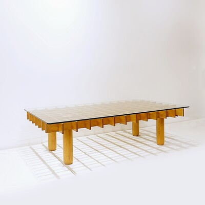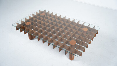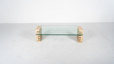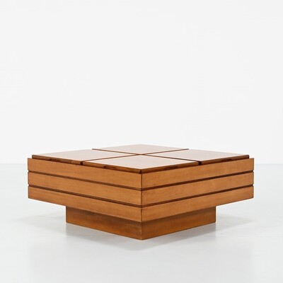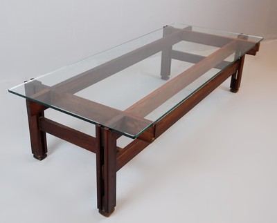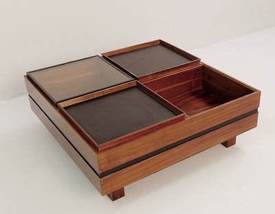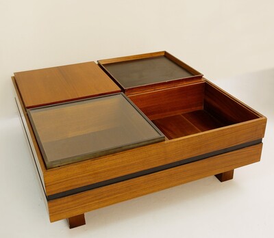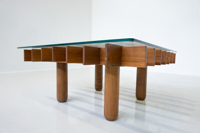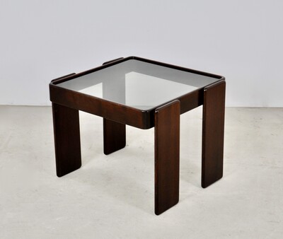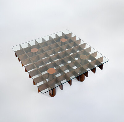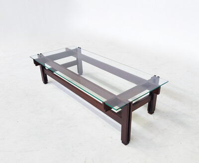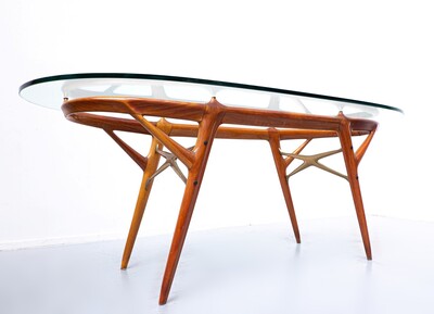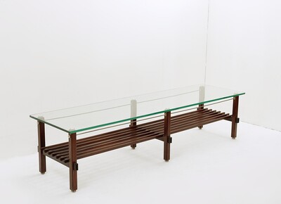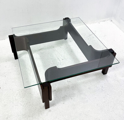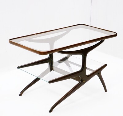 Mid-Century Modern Coffee Table attributed to Carlo Scarpa, Wood and Glass, Italy
