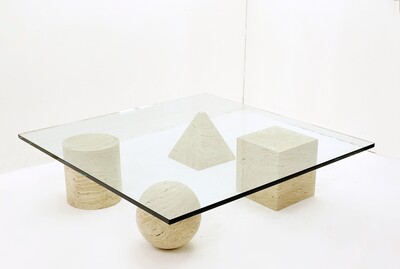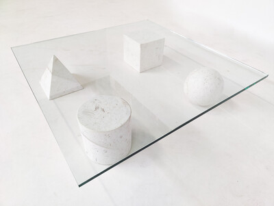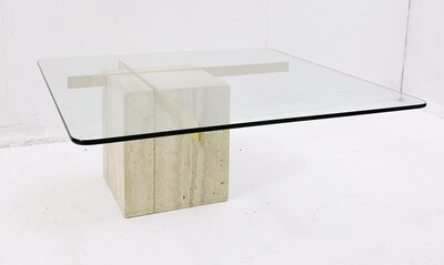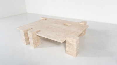 Coffee Table in Travertine in the style of Mario Bellini, Italy 1970's