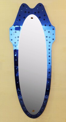 Mid-Century Blue Ceramic Wall Mirror by Fausto Melotti - Italy 1950s