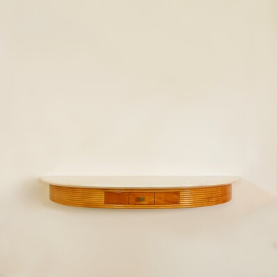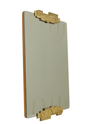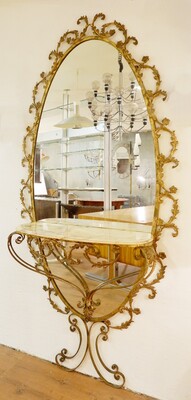 Gold Colored Oval Mirror and Console - Italy 1950s