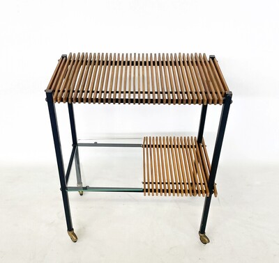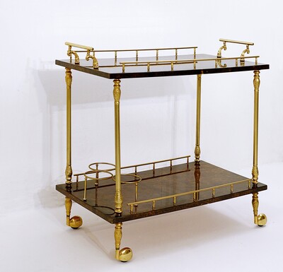 Aldo Tura Goatskin Parchment Bar Cart, Italy, circa 1950