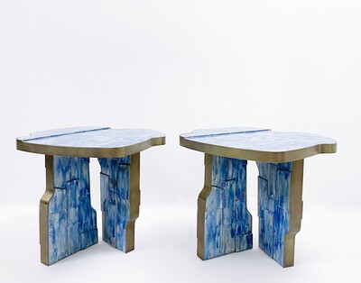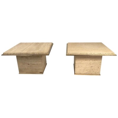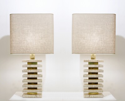 Pair of Contemporary Table Lamps, Travertine, Italy