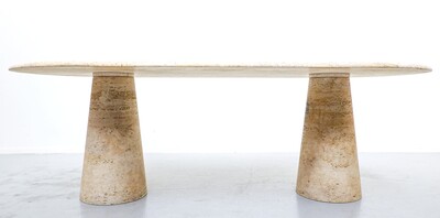 Mid-Century Travertine Dining Table in style of Angelo Mangiarotti, Italy, 1970s