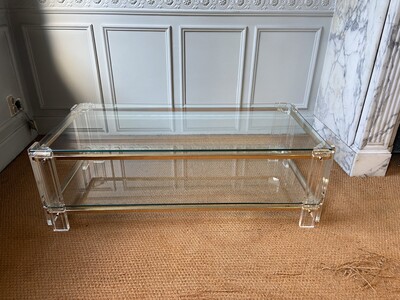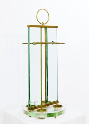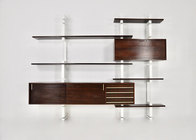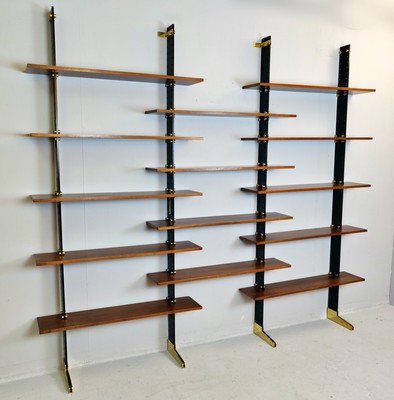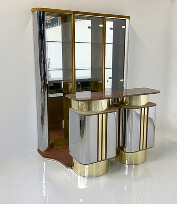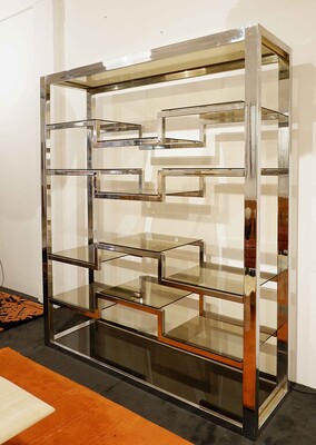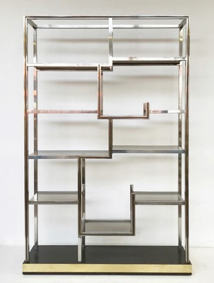 monumental lucite, glass, brass & chrome shelving by Romeo Rega, Italy, 1970's