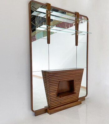 Mid-Century Modern Large Wooden Mirror, Italy, 1960s