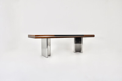 Mid-Century Modern Console, Wood and Chrome Metal, Italy, 1970s