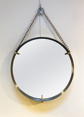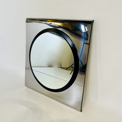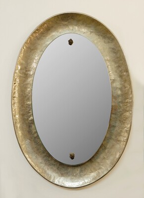 Nickel-Plated Hand-Hammered Bragalini Mirror, Italy, 1960s