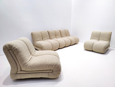 Contemporary set of 5 Armchairs, Boucle Fabric, Italy