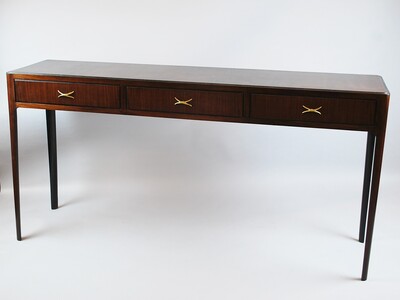 lacquered wood and polished brass console table by Tommaso Barbi - Italy, circa 1970.