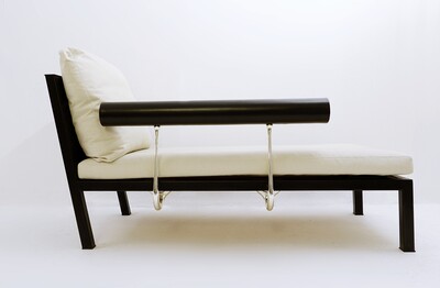 Gianni Songia Black Leather Daybed Sofa Model GS-195 for Sormani, Italy, 1963