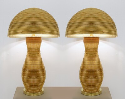 Pair of Pale Yellow Pastel Ceramic Pottery Table Lamps - Zaccagnini, Italy