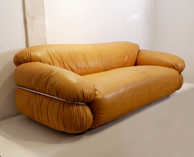 Bonanza 2 Seater Sofa by Afra & Tobia Scarpa, Italy, 1970s - New Leather Upholstery