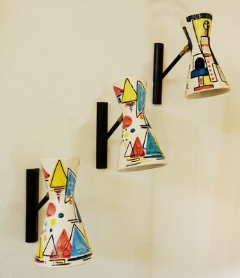 Set of 3 Painted Ceramic wall lamps by Iodice Urbino - Italy 1950's