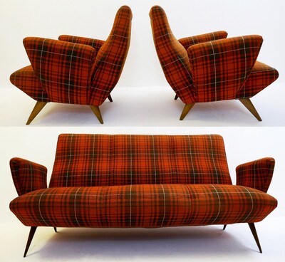 Set of a Sofa with two Armchairs by nino zoncada for frimar , Italy, 1950s