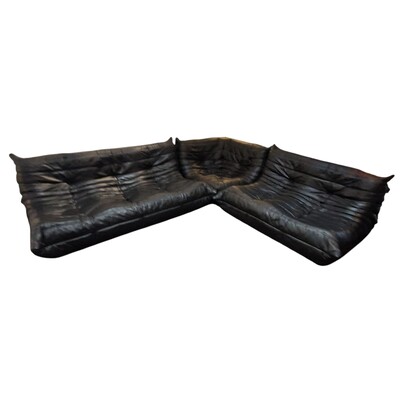 TOGO set by Michel Ducaroy for Ligne Roset, in black leather